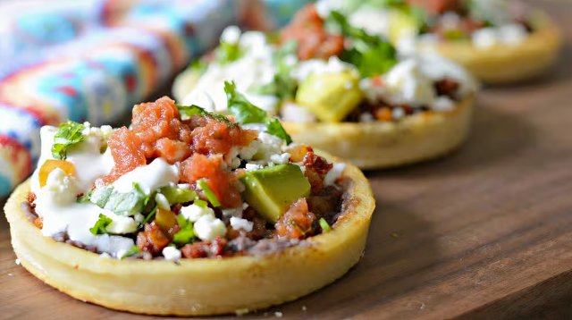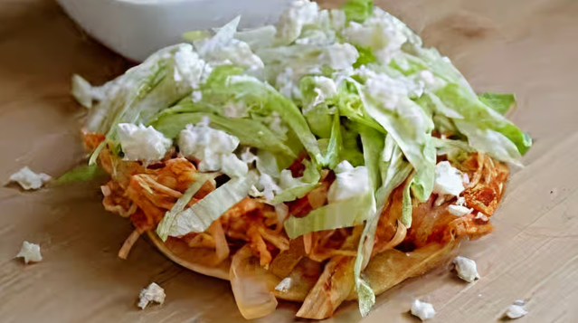 Fried masa base with choice of meat, beans, cheese, and lettuce.